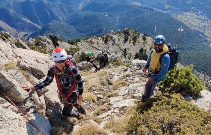 Sortides guiades de pràctica de crestes en cordada curta.