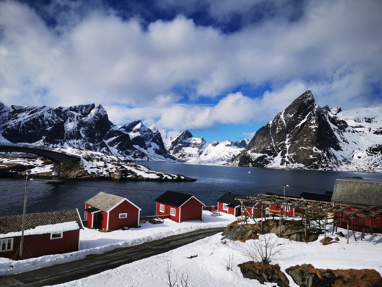 Arribada a Evenes i recollida del cotxe de lloguer. El trajecte cap a Svolvær (unes 2h30) ja és tota una experiència: carreteres panoràmiques entre fiords, muntanyes i ponts espectaculars. Primera nit a les Lofoten, allotjats en un rorbu, les típiques cabanes de pescadors.